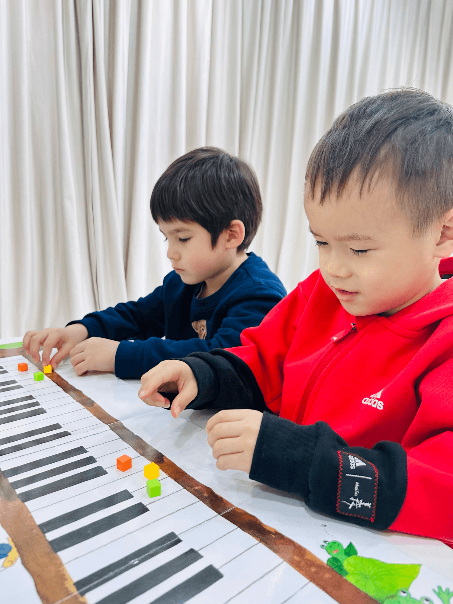 在課堂中,孩子除了學習鋼琴演奏,也會透過聽音練習、音樂互動遊戲,加強音感與節奏感。老師也會運用多元化的教具,讓孩子在遊戲中理解音樂知識,使樂理變得更具體、更容易記憶。 在課程安排中,孩子會不斷接觸新的樂曲與學習內容,在穩定的進度中累積彈奏經驗,建立良好的看譜能力,培養扎實的演奏能力與自信。
